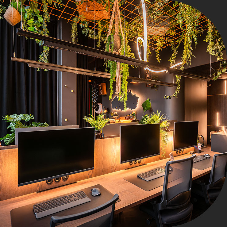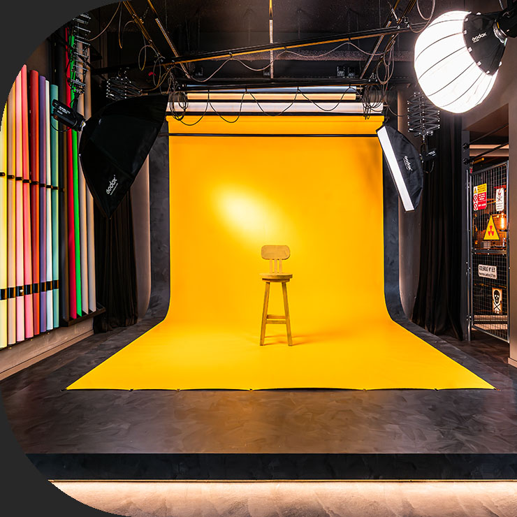 Met een infinity wall, achtergrondrollen tot 3,5 meter, continu LED-verlichting én studioflitsers is alles voorzien voor een professionele workflow.